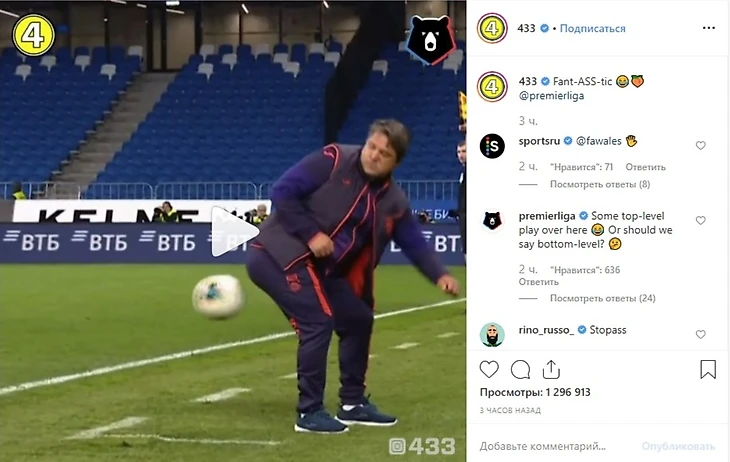 Технику Евсеева заценили даже заграницей. Популярный паблик 433, собирающий у себя самые интересные футбольные видео со всего света, запостил момент с Евсеевым и у себя. Сейчас у поста в инстаграме 1,2 млн просмотров и 300 тысяч лайков. Кстати, мы воспользовались случаем и в комментах передали привет футбольной ассоциации Уэльса.