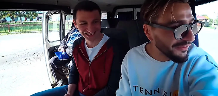 Вы все знаете то самое место за водителем, пассажир с которого передает деньги за проезд. Так и здесь – Жека и Алан сели как раз туда, и Дзагоев всю дорогу передает деньги. «Руку подкачаю», – шутит он.