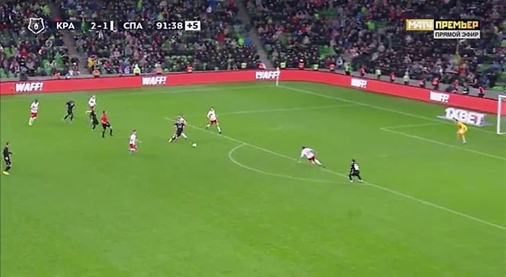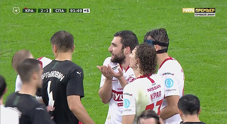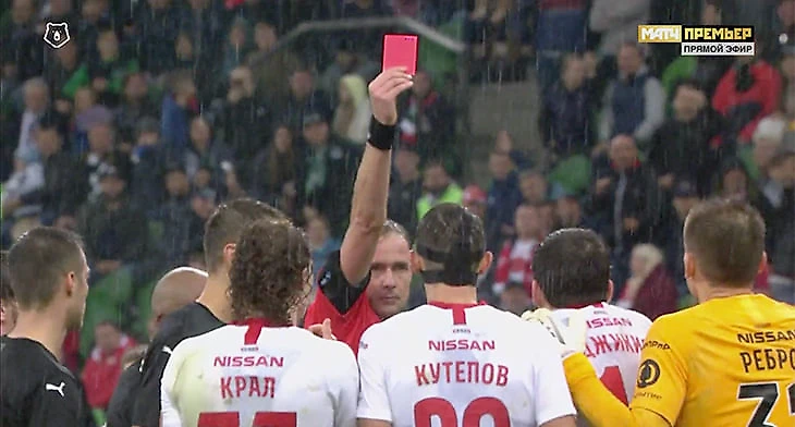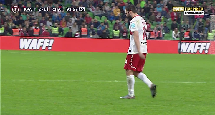 Мало того, что «Спартак» проиграл, так еще и потерял капитана: Георгия Джикию удалили в добавленное ко второму тайму время за две желтые карточки. Между ними – 10 секунд.