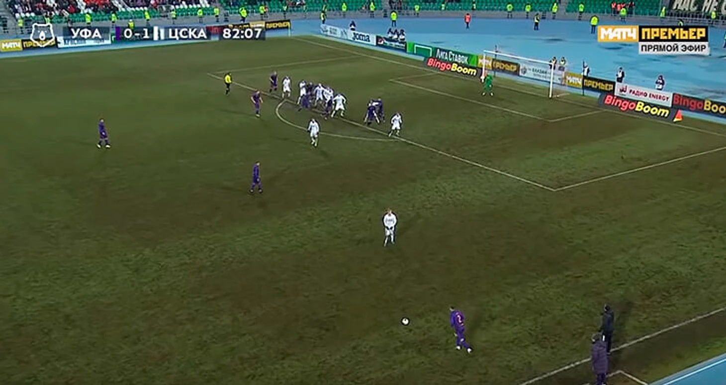 Картинка с матча «Уфа» – ЦСКА (1:1) напоминала трансляции из 90-х. Все дело в качестве искусственного поля (да, это такое искусственное), смотрите: