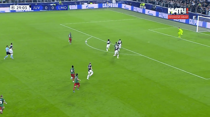 Обратите внимание, что для Алексея все выглядело не очень здорово. Игрок «Локо» находился в плотном кольце: Леонардо Бонуччи, Алекс Сандро и Хуан Куадрадо.
