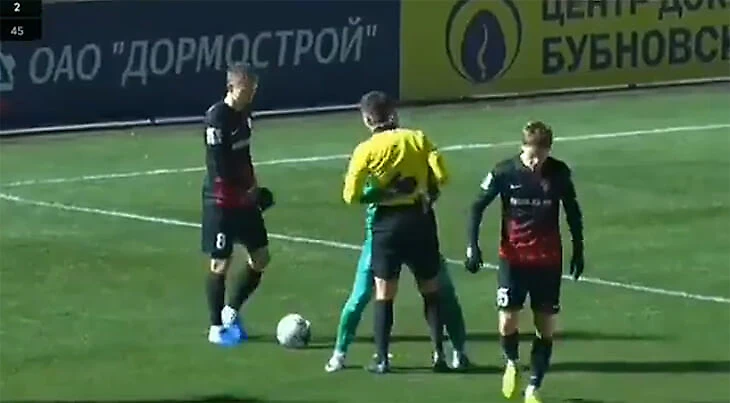 Как же мило в ФНЛ 😊 Нападающий «Томи» обнял судью, чтобы не получить желтую и дисквалификацию