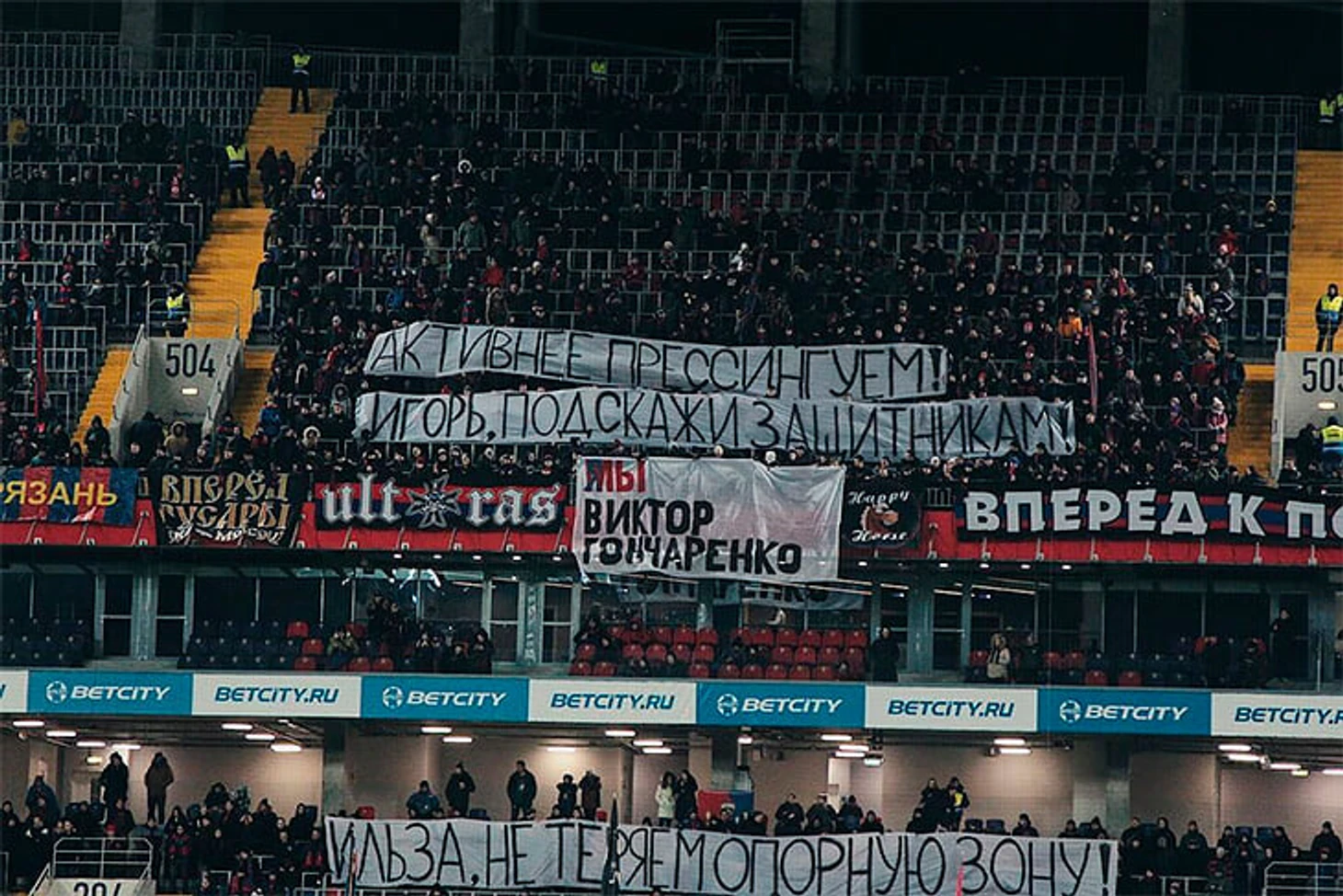 Именно поэтому болельщикам ЦСКА пришлось проводить акцию – Гончаренко пропустил матч с «Крыльями Советов» из-за дисквалификации. Если помните, в перерыве игры с «Сочи» он попросил арбитра Станислава Васильева сделать «лицо попроще» и добавил пару нецензурных слов. Все это попало в трансляцию игры на YouTube – и КДК забанил тренера на одну игру.