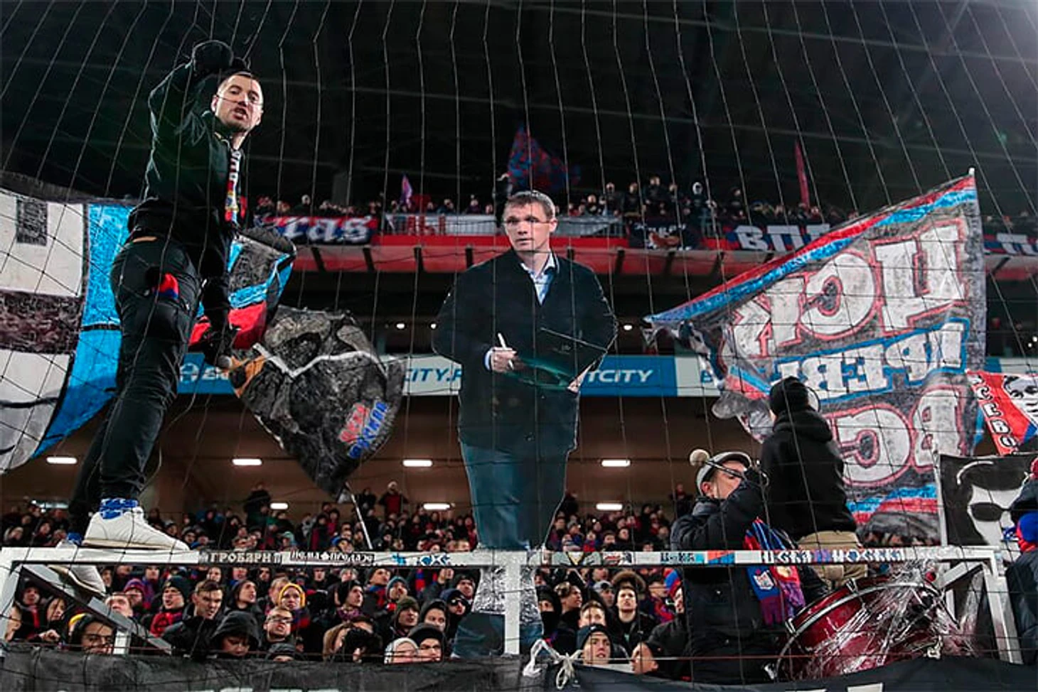 Гончаренко пропускал матч, но болельщики ЦСКА выкрутились: сделали картонного тренера и баннеры с его выкриками
