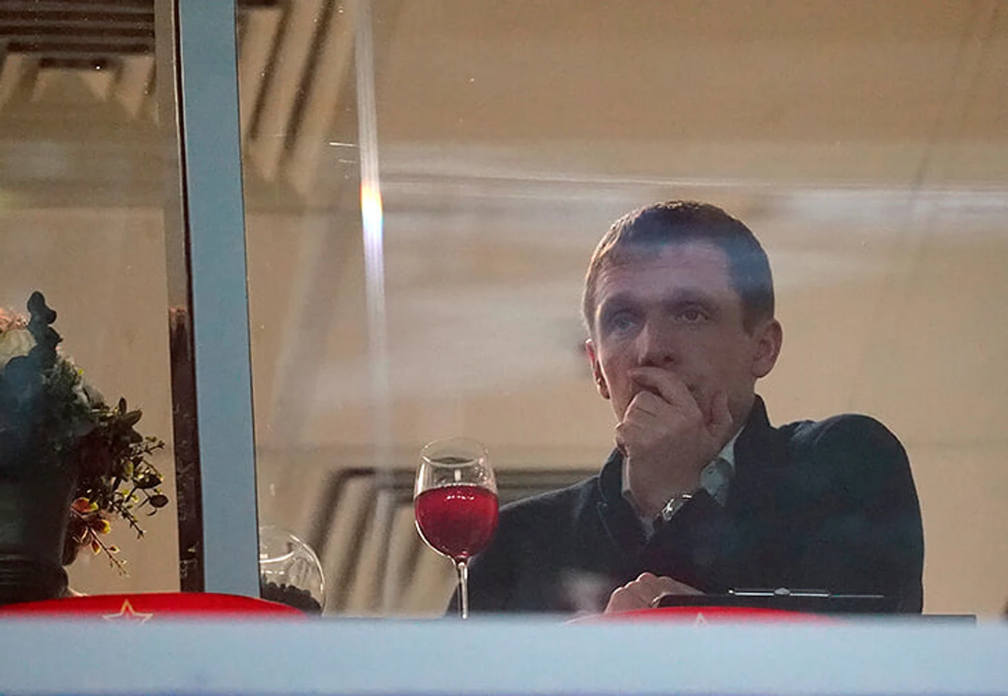 Сам тренер в первом тайме кайфовал в випе с бокалом вина.