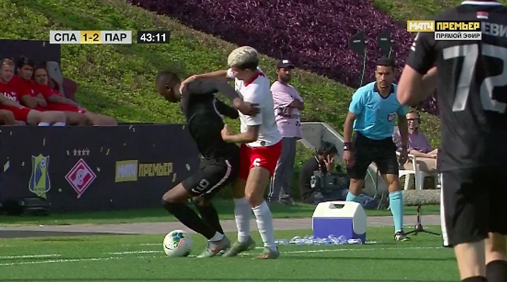 • Айртон придержал соперника незаметно для катарского судьи прямо перед скамейками, мяч дошел до нападающего, после чего зафиксировали офсайд.