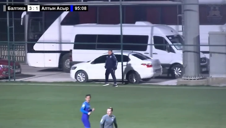 После драки футболисты «Алтын Асыра» тоже направились в раздевалку, но всех остановил главный тренер «Балтики» Евгений Калешин: он вмешался и предложил доиграть матч.