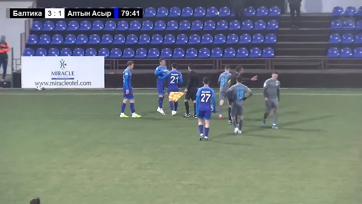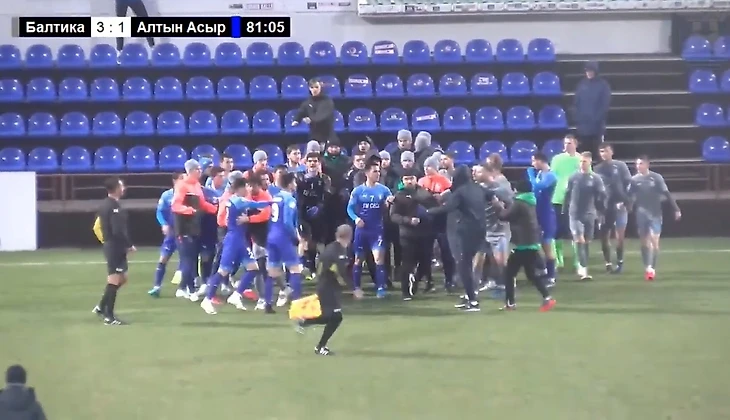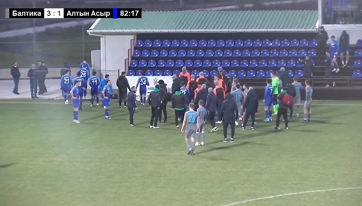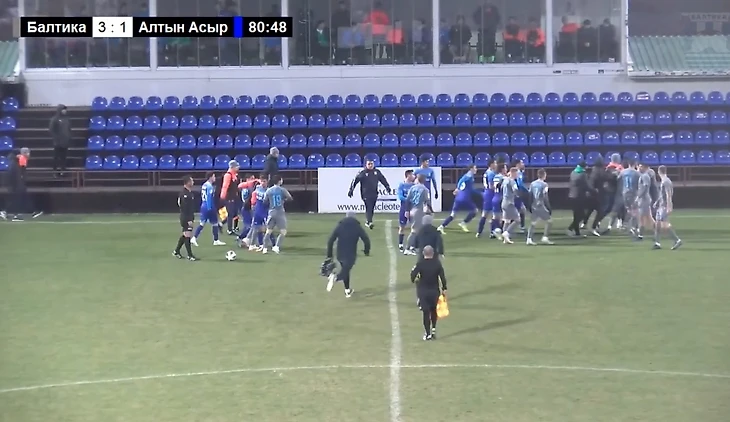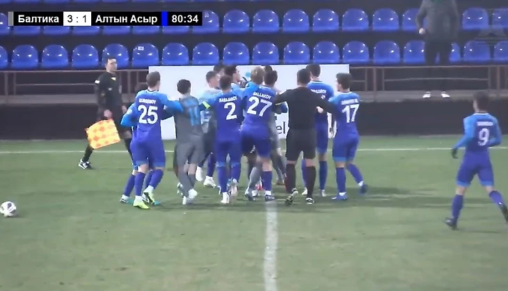 Самое интересное случилось уже после 80-й минуты (тогда все голы были уже забиты). Футболисты «Балтики» и «Алтын Асыра» разогрелись в мелких стычках, чтобы потом приступить к большой потасовке. Повод – пара мелких фолов, но на поле в итоге выбежали даже запасные.