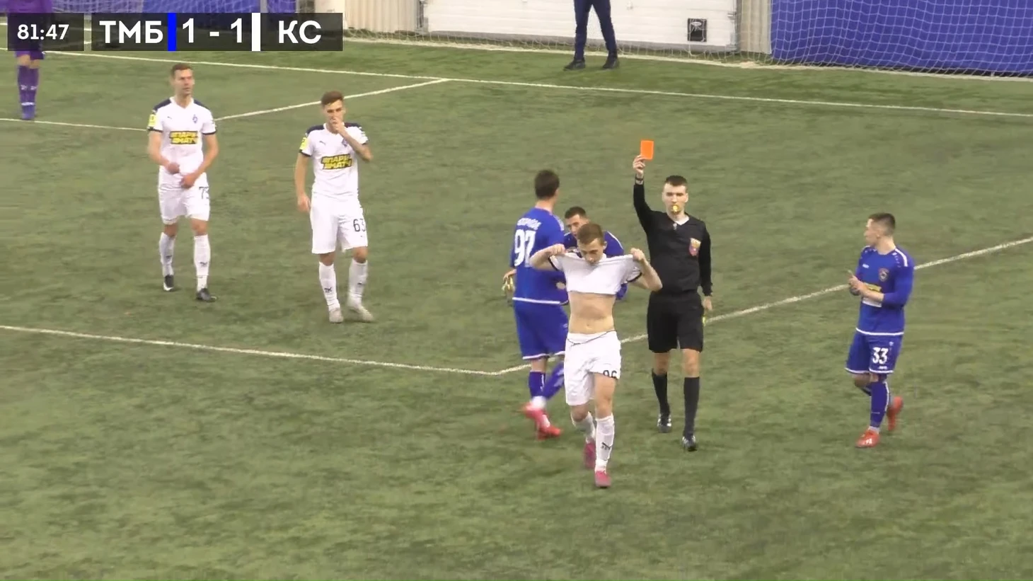 Игру завершили на 83-й минуте: судья Илья Иванов выписал игрокам «КС» пять красных (четыре футболистам, одну – тренеру) и остановил матч.