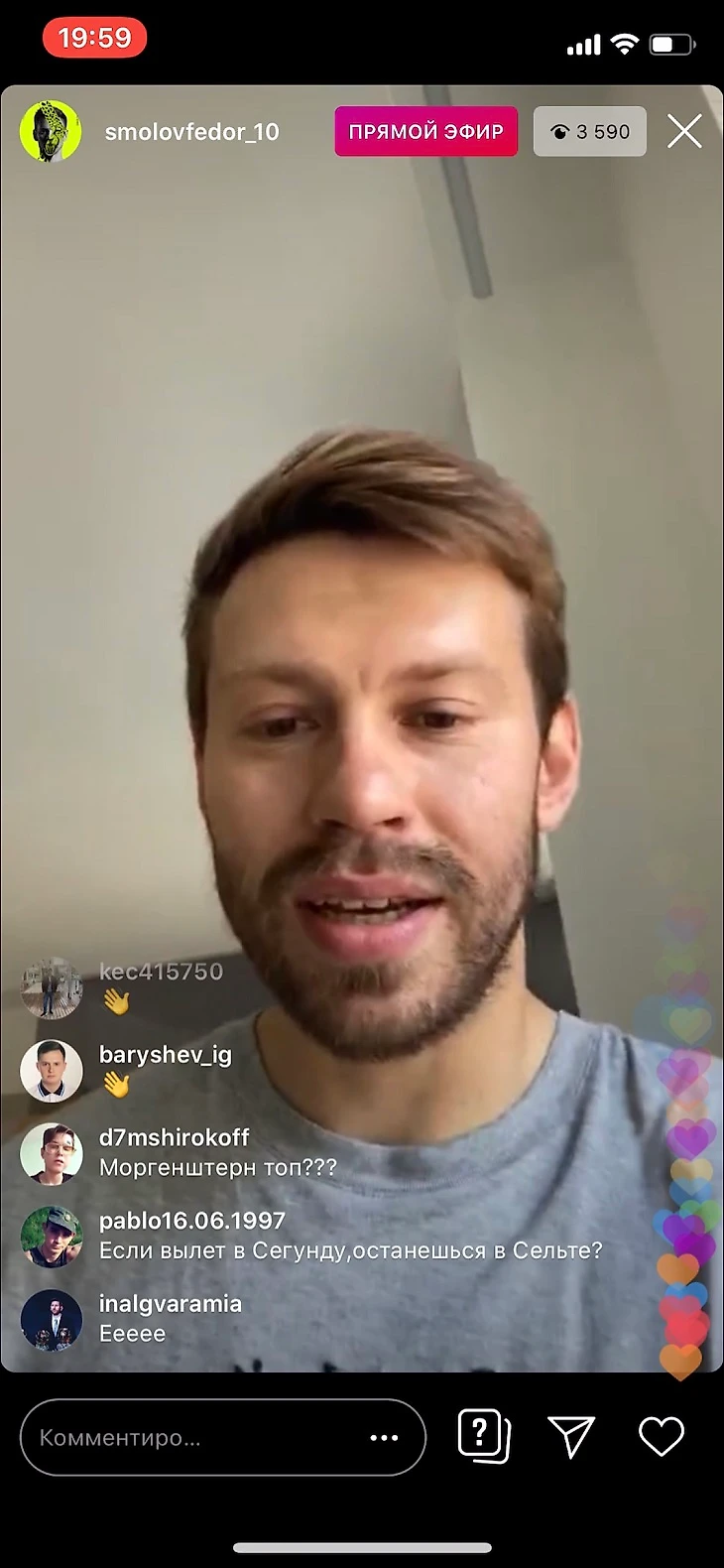 Сегодня Смолов вышел в прямой эфир инстаграма, делая кардио на велотренажере – его привезли домой с базы. Федор хотел еще и беговую дорожку, но она не поместилась: у Смолова маленькая квартира.