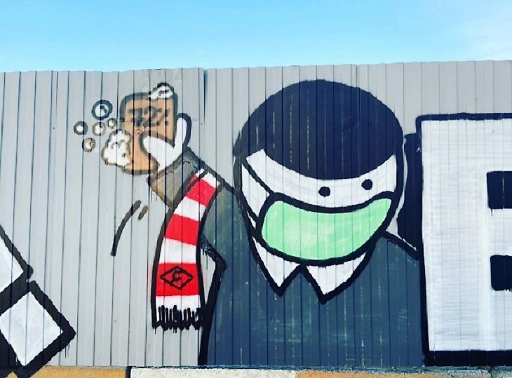 Фанаты «Спартака» поддержали врачей и пациентов с коронавирусом, которые находятся в больнице поселка Коммунарка. Под окнами инфекционной больницы они сделали мощное граффити с надписью «Борись и побеждай!»