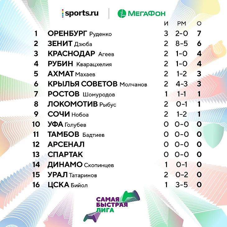 Вот так выглядит таблица «Самой быстрой лиги» после игр 29 марта. Да-да, «Оренбург» на первом месте, но у преследователей есть матч в запасе.