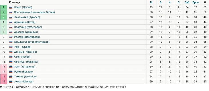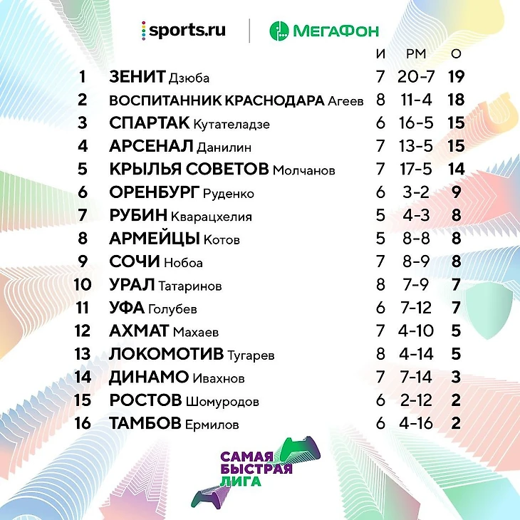 А вот таблица РПЛ с учетом результатов Самой быстрой лиги.