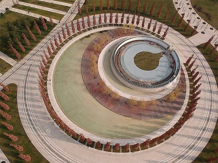 В парке появились новые невероятные формы, внутри которых растут кипарисы, террасы и огромная стальная капля – точнее, значок геолокации.
