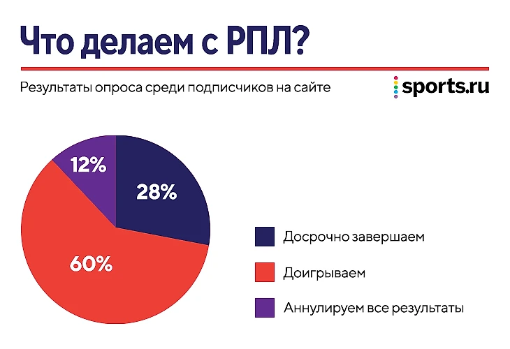 Большинство из вас за то, чтобы доигрывать сезон. Кажется, боссы РПЛ и РФС тоже прониклись, за последнюю неделю их позиция как раз развернулась в эту сторону.
