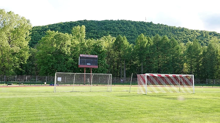 Искусственное поле с покрытием, подогревом и трибунами на 700 мест.