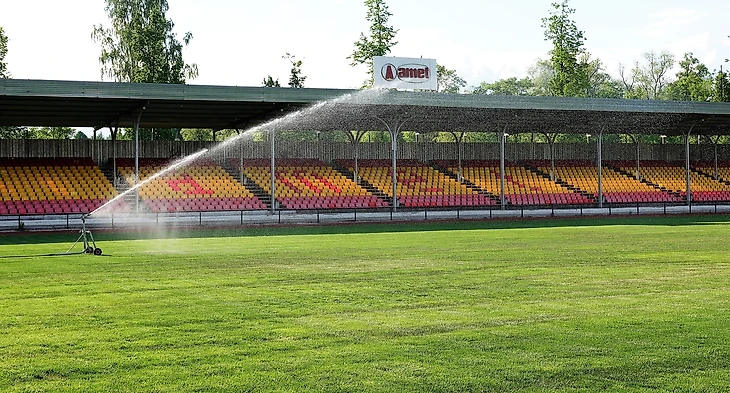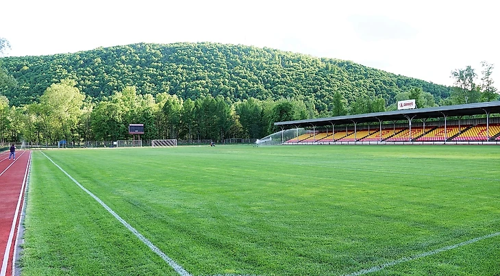 Стадион на 3 тысячи мест с крытой трибуной и полем отличного качества;