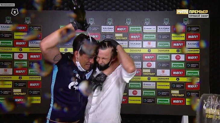 Уже с этим знанием Сергей Семак выводил команду на матч с «Краснодаром» – игру, которая должна была стать чемпионской для «Зенита». Разумеется, после игры ему прилетели персональные поздравления: его трижды облили шампанским, а Дзюба и Оздоев делали это с криками «Дедуля!».