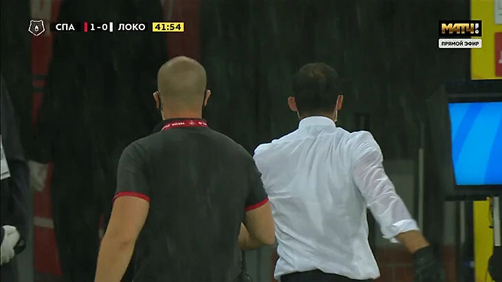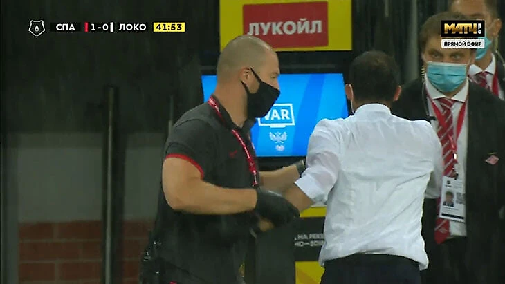 Сергей Егоров озвучил версию, что Доменико бесился не из-за назначенного пенальти, что причина в предыдущем эпизоде с Жоао Марио – но там повода для такого сумасшествия тоже не видно: похоже, что Умяров сфолил, «Локо» быстро разыграл штрафной. А главное – до нарушения Умяров в штрафной оставалось еще полминуты, вся игра переместилась на другой край. Еще есть версия, что тренер «Спартака» увидел фол Миранчука на Умярове еще до входа в штрафную.
