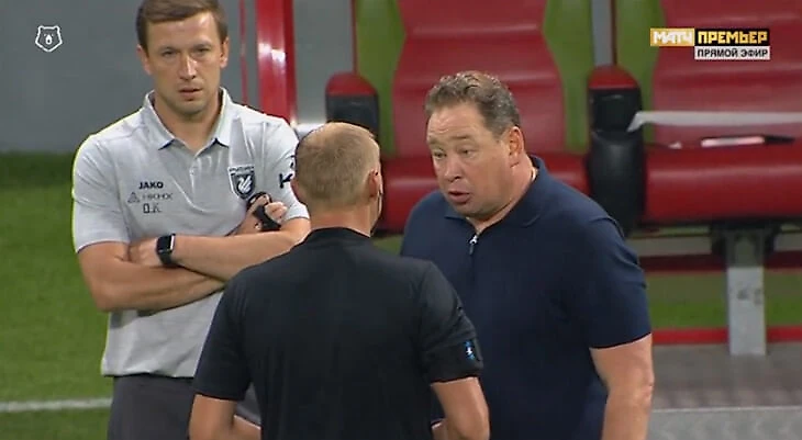 Слуцкий вспыхнул после падения Игнатьева в штрафной Гильерме. Сначала накричал на судью в подтрибунке, потом на поле – и удалился