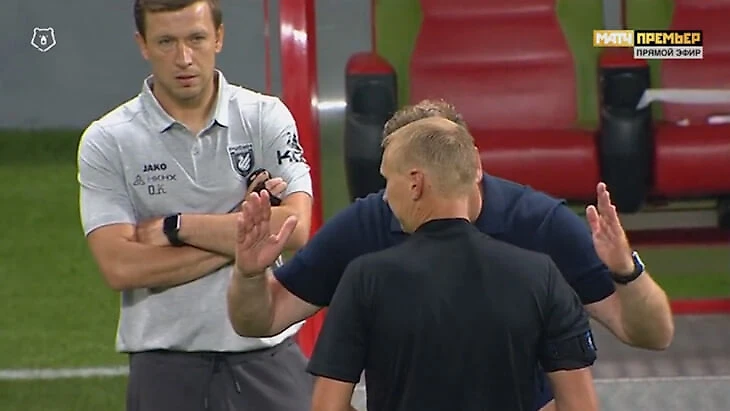 В итоге за несколько минут до старта второго тайма Слуцкий ждал арбитра у своей скамейки. Когда Иванов подошел, тренер что-то очень эмоционально ему высказал, и арбитр действительно показал ему красную. Тренер ушел в раздевалку.