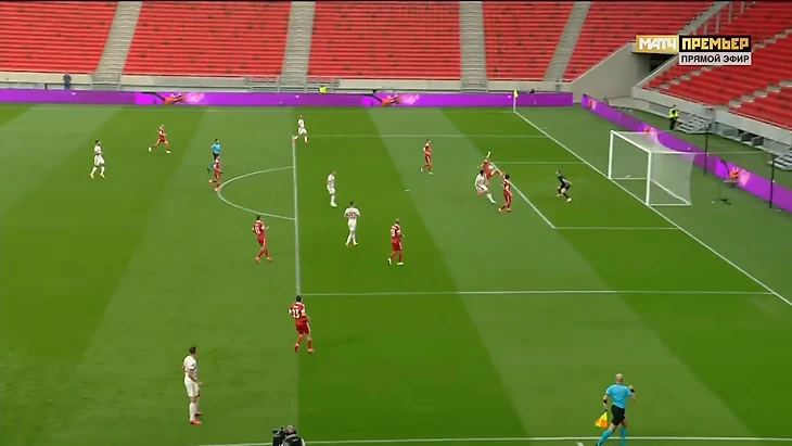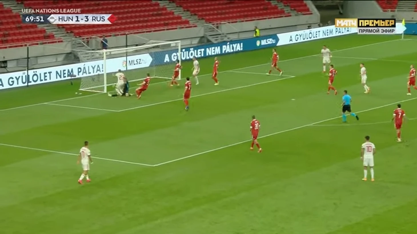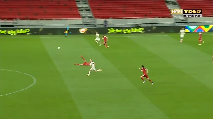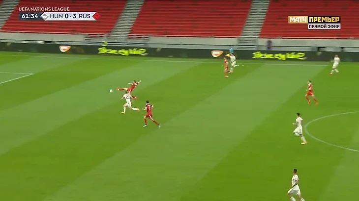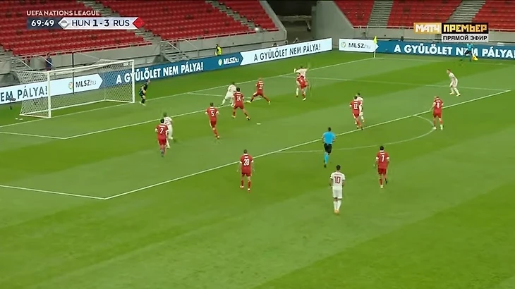 При 3:0 у Семенова пошли результативные ошибки. Сначала при контратаке венгров: Андрей попытался выбить, но промазал мимо мяча и упал. Ролланд Шаллаи убежал один на один и в этот раз реализовал шанс спокойно.