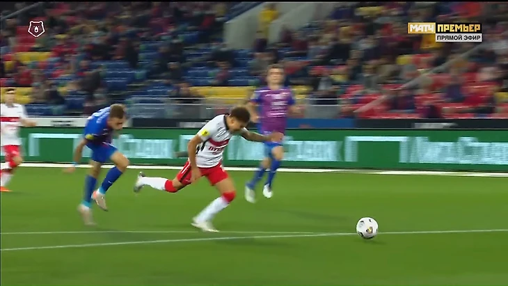 «Спартак» был очень недоволен третьим голом: один из тренеров получил прямую красную за громкие возмущения, Тедеско – желтую. Все потому, что в ходе последней голевой атаки мяч попал в руку Облякову.