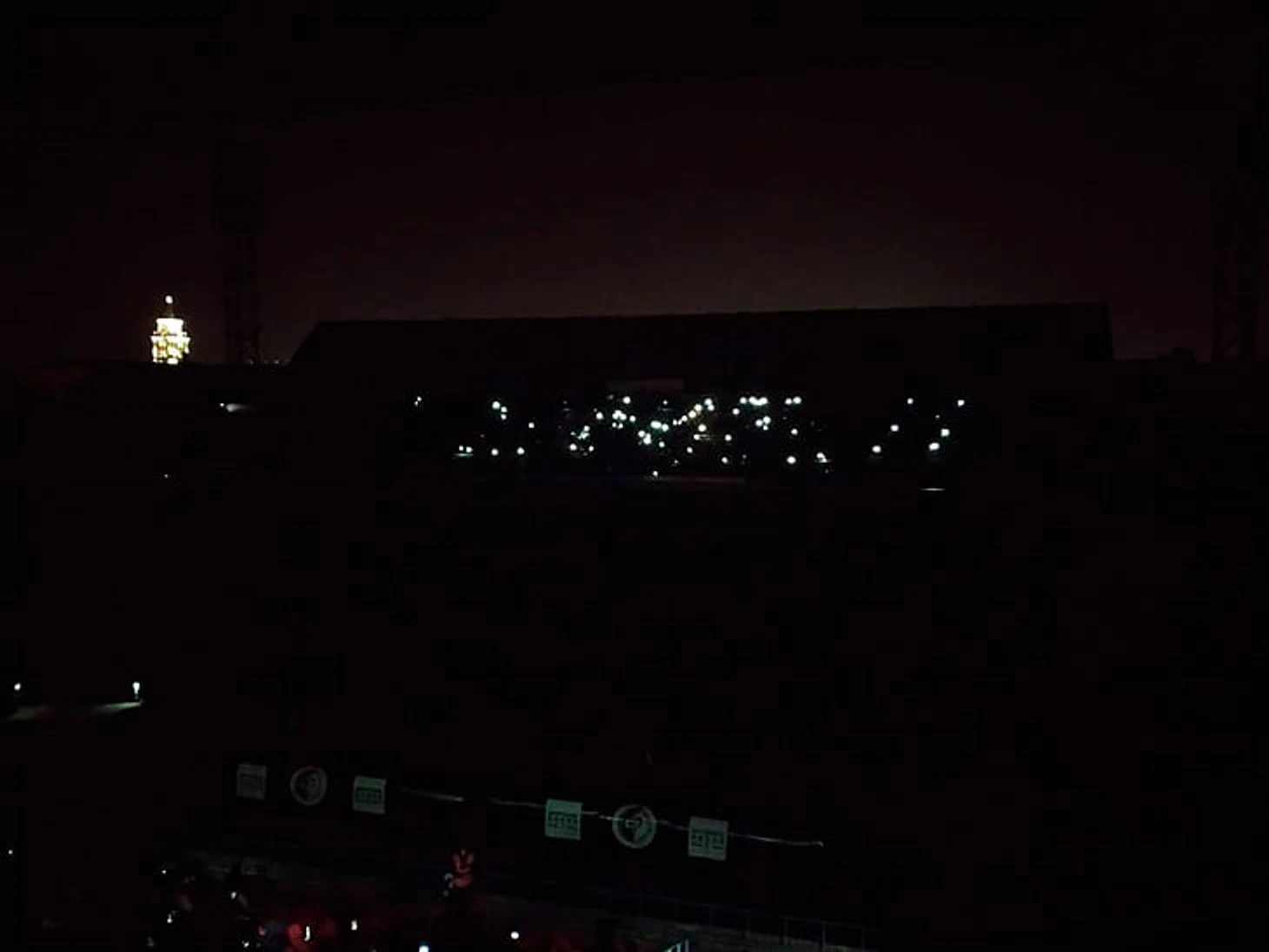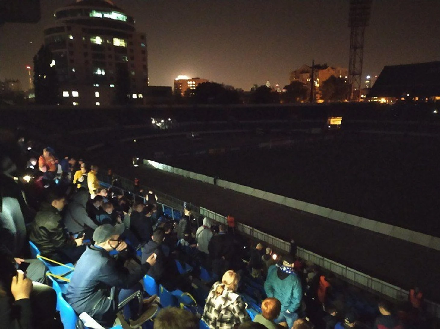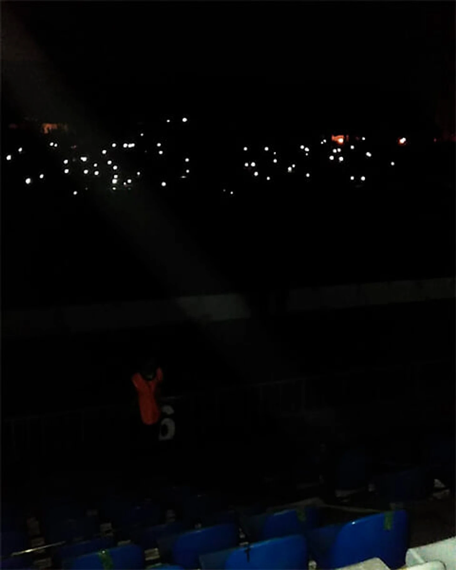 Болельщики зажгли мобильные телефоны. Это был единственный источник света на целый квартал: темнота накрыла и дома поблизости, там тоже остались без электричества. Причина – отключение на кабельной линии.