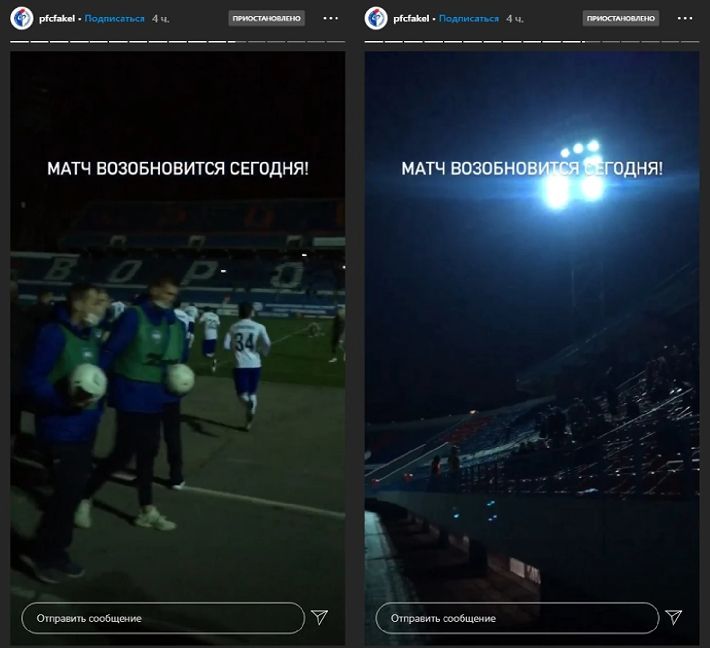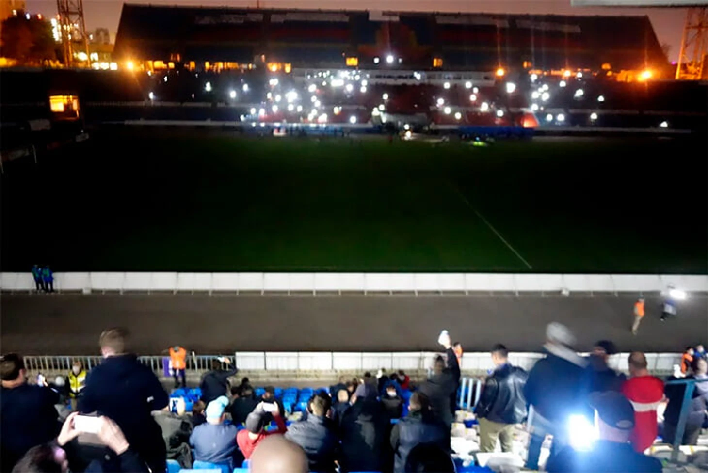 Блэкаут на матче ФНЛ: «Факел» с «Аланией» прервались почти на час из-за погасшего света, зрители включили фонарики
