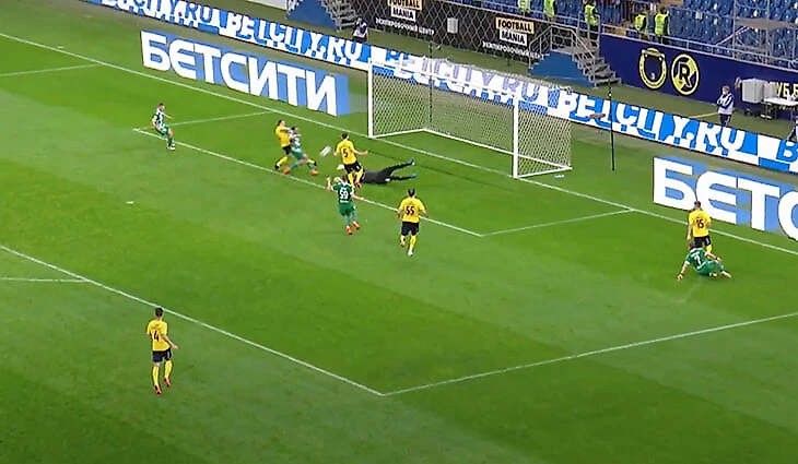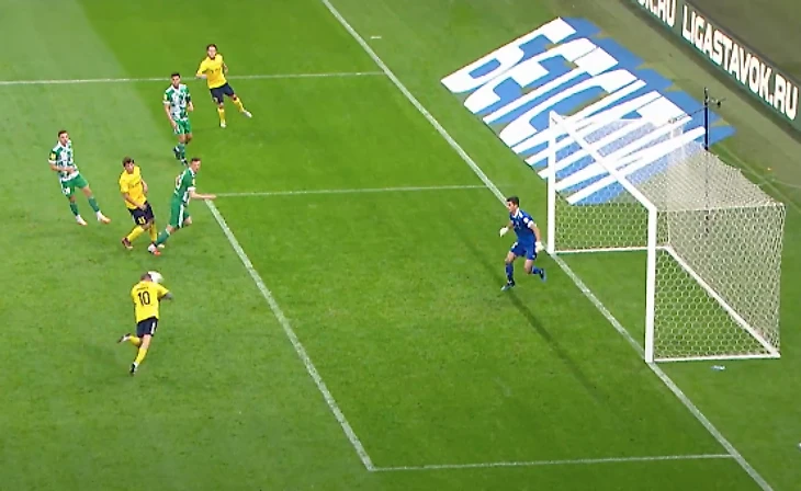 Буквально через полторы минуты Мелкадзе вмазал в перекладину по пустым воротам прямо с линии вратарской. Да, он не был там в одиночестве, но все равно возможность для удара нашел классно – не забил.