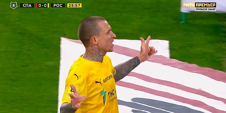 Отметил Мамаев гол у фанатской трибуны «Спартака» – красочными жестами.