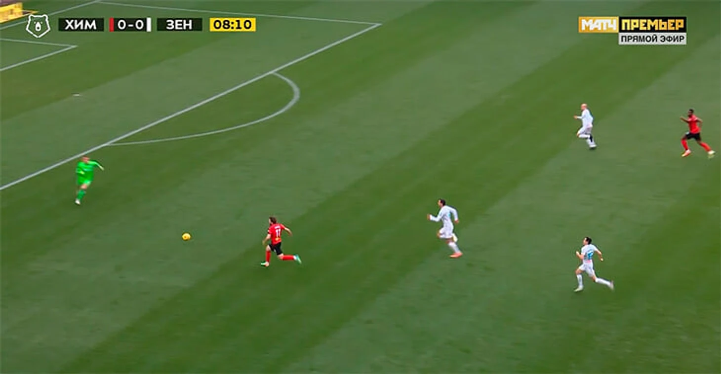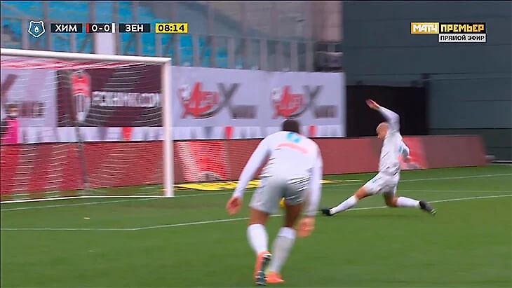 Причем «Зенит» чудом не пропустил на 9-й минуте. «Химки» отобрали мяч на своей половине и резво убежали в контратаку: Мирзову закинули на правый полуфланг, он немедленно помчался к мячу, но навстречу бежал Михаил Кержаков. Только выход кипера получился неудачным: он хотел в подкате выбить мяч, но не попал по нему и пропустил Мирзова к пустым воротам. Резиуан убрал на замахе Ловрена и пробил низом.