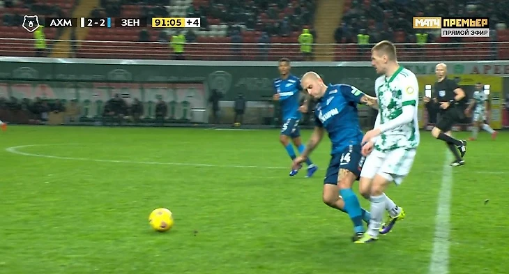 Но «Ахмат» опять ответил! Чистяков в прыжке ударил Ильина в штрафной – после просмотра видеоповтора Сергей Карасев поставил пенальти.