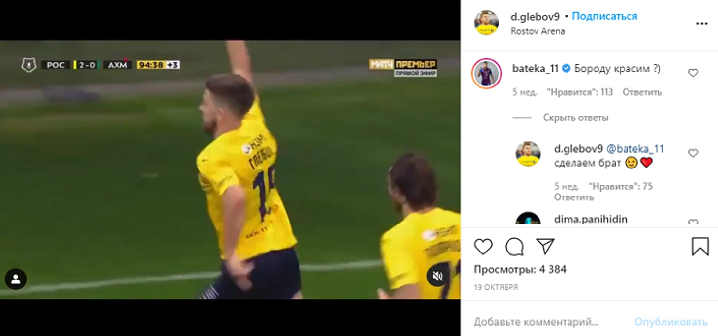 Напоминали даже бывшие одноклубники. «Бороду красим?» – спросил новичок ЦСКА Бахтиер Зайнутдинов под видео с голом. «Сделаем брат», – ответил Глебов.