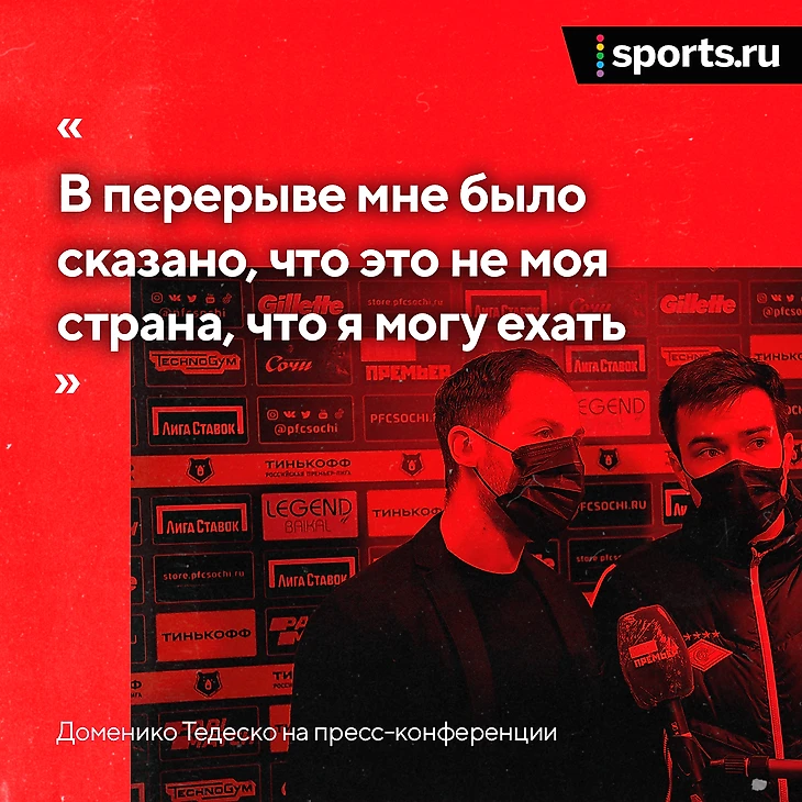 Тедеско и в первом тайме апеллировал к скамейке «Сочи», а второй провел совсем на взводе. Видимо, поэтому после матча снова пошла путаница в показаниях.