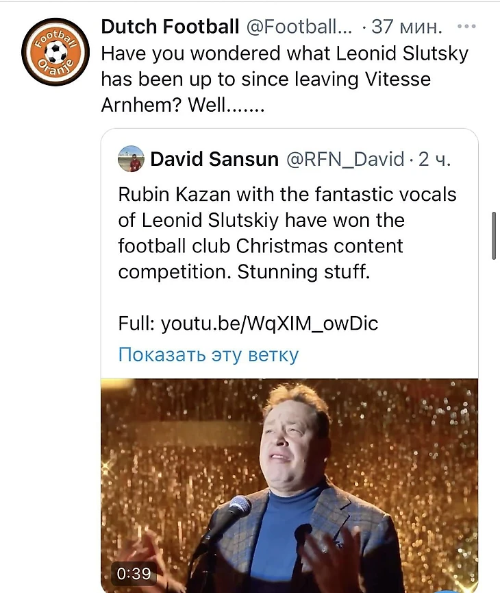 Приятно что Слуцкого в Европе помнят и тоже оценили это видео)
