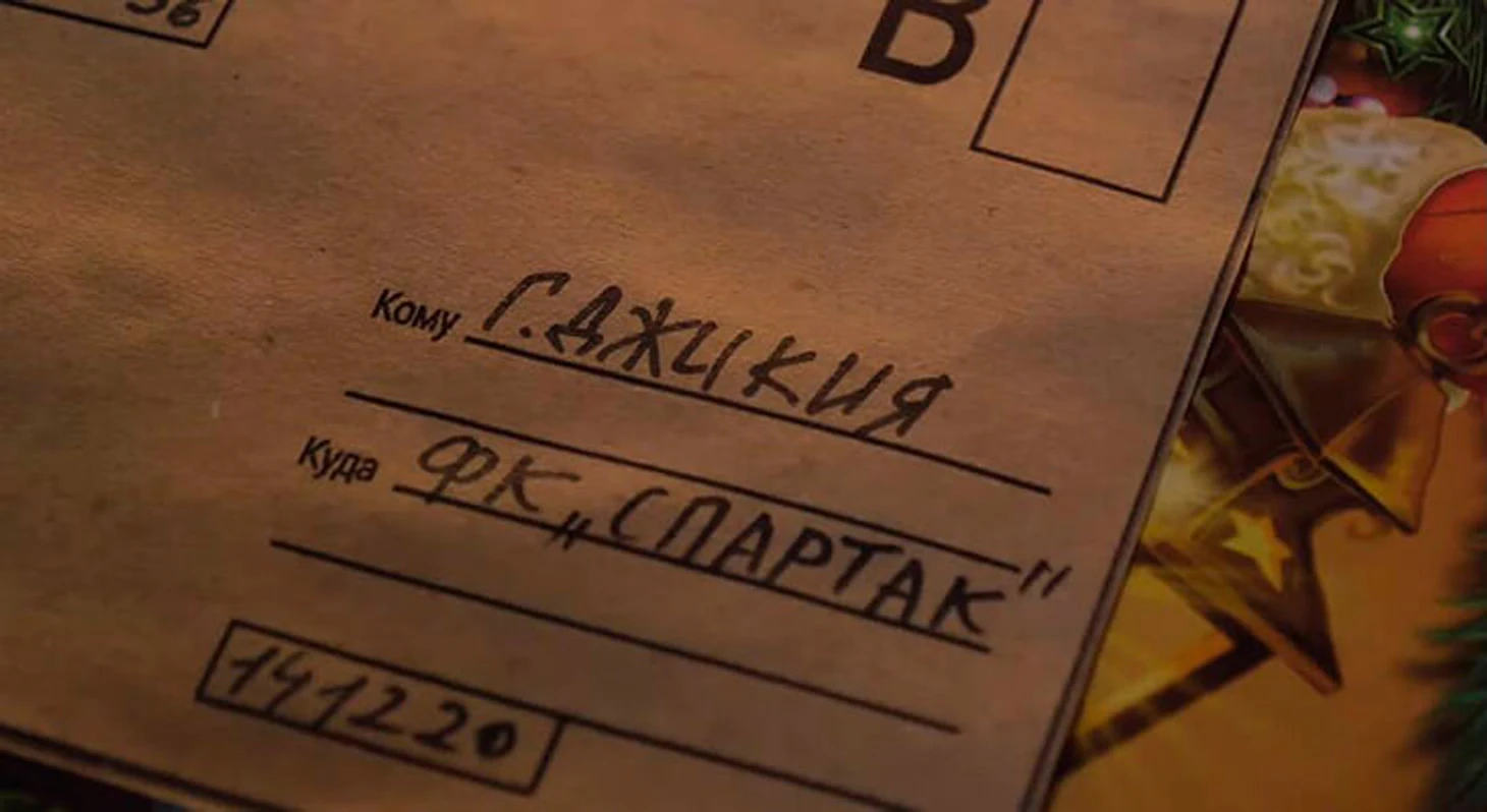Здесь куча и футбольных отсылок. Например, Денис Макаров отправляет подарок (шоколадные медальки) некому Г. Джикии в «Спартак». Это намек на медиавойну вингера с капитаном красно-белых после победы москвичей. Макаров после поражения «Рубина» от красно-белых выдал: «С такой игрой скорее мы можем больше бороться с «Зенитом», чем «Спартак». Джикия ответил: «Он так сказал? Что «Рубин» поборется с «Зенитом»? Ну, на табло пусть посмотрит».