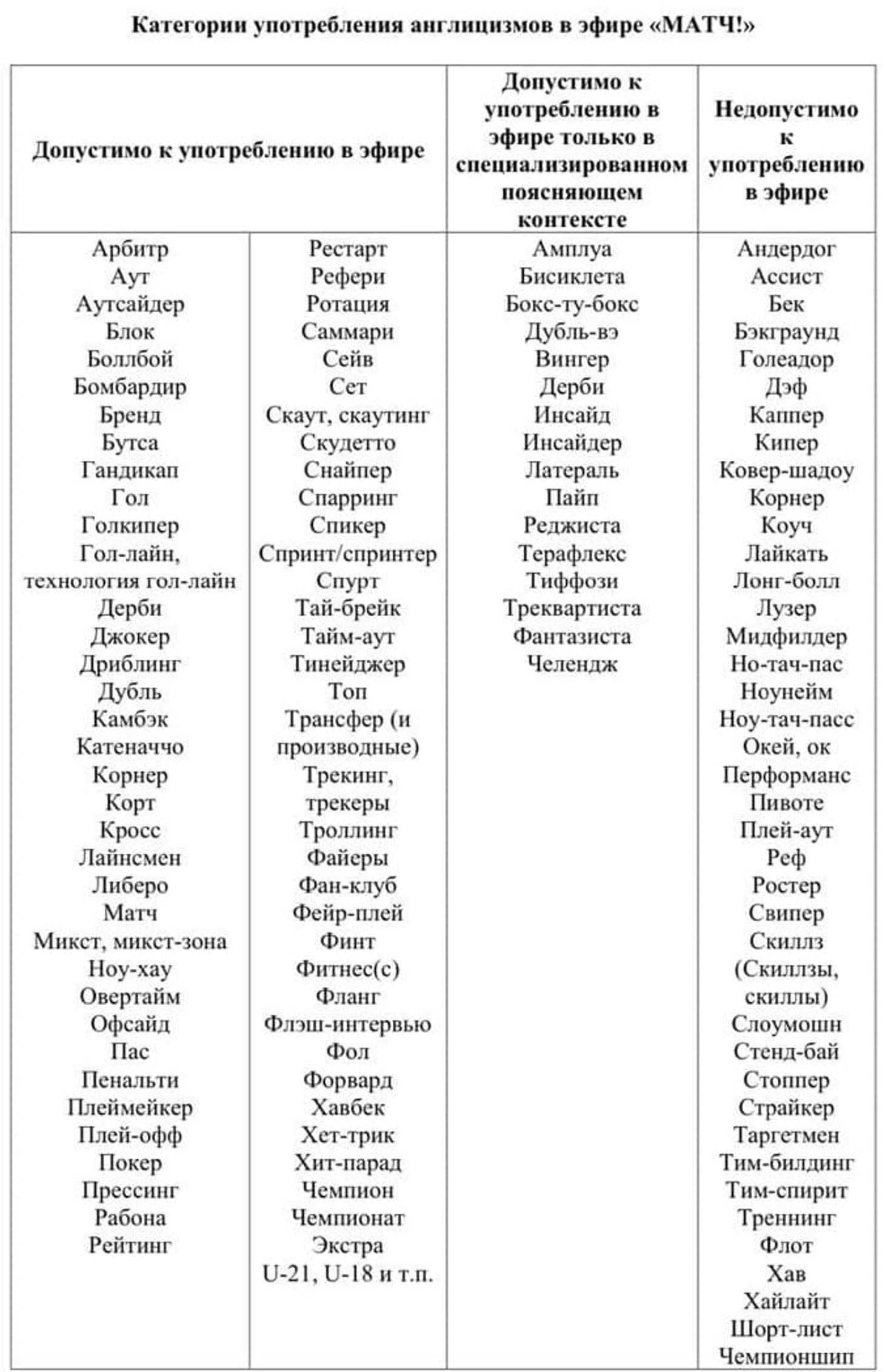 и это я только 3 минуты смотрю в эту несчастную картинку. Спасибо, что переступили через себя и оставили такие убивающие русский язык англицизмы, как "гол" или "пенальти". Не увидел в списке разрешённых слово "футбол". Его можно или как?