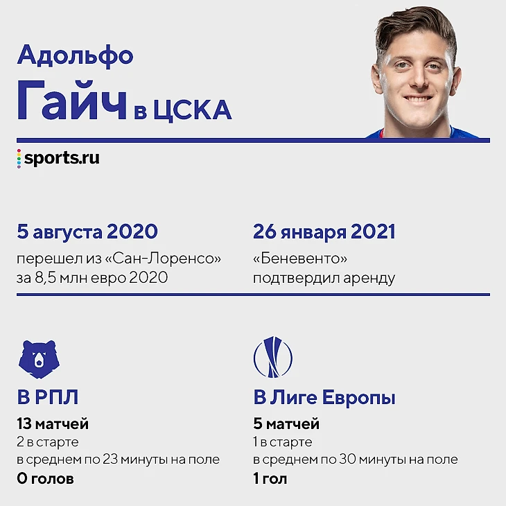 ЦСКА обещал показать настоящего Гайча и ссылался на адаптацию, но в итоге – аренда. Адольфо уезжает с одним голом в 18 матчах