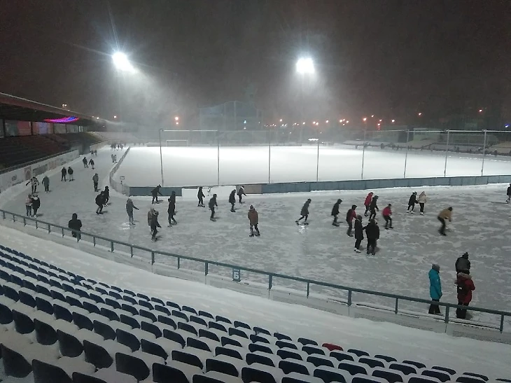 На стадионе сейчас и правда каток. У него даже группа «ВКонтакте»: вход – 50 рублей, прокат коньков – 100 рублей за 3 часа. Так стадион выглядел перед новогодними праздниками.
