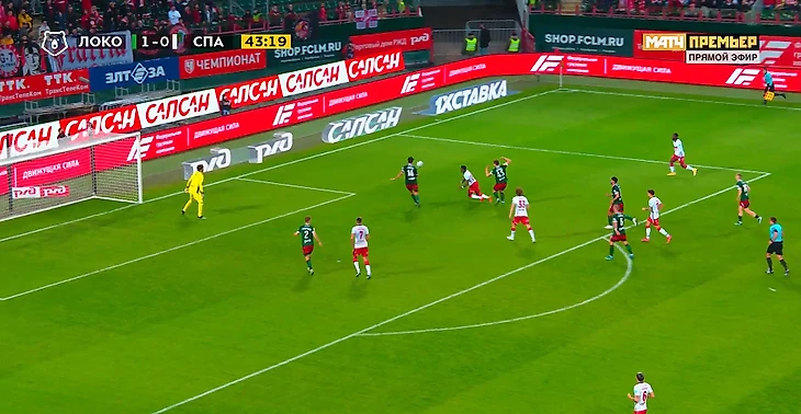 «Спартак» не размяк и превращал позиционные атаки в опасные моменты, периодически давая «Локо» контратаковать. И на 44-й минуте игра вспыхнула.