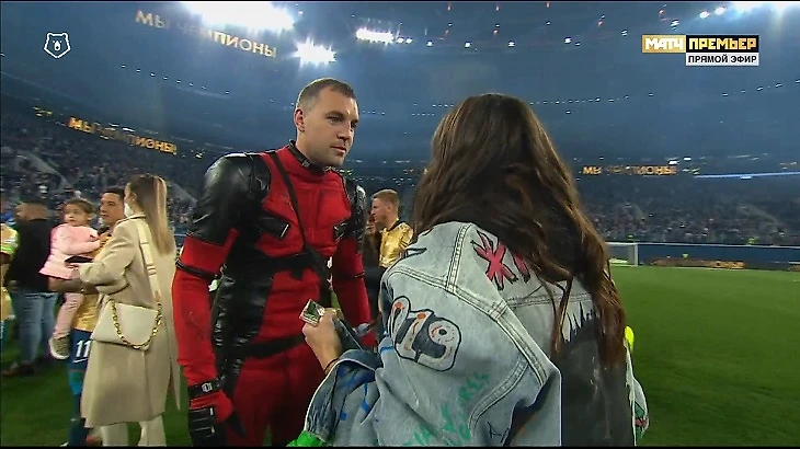 Кажется, Артем Дзюба устал принимать медали РПЛ просто так и на этот раз вышел в новом образе. Нападающий надел костюм Дэдпула и в нем вышел на подиум.
