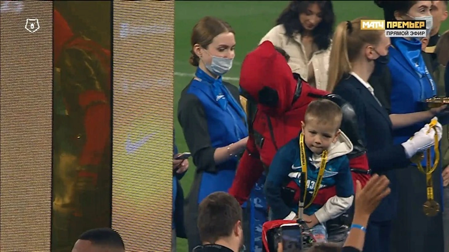 Дзюба в костюме Дэдпула – такого награждения мы еще не видели. Отдал медаль сыну!