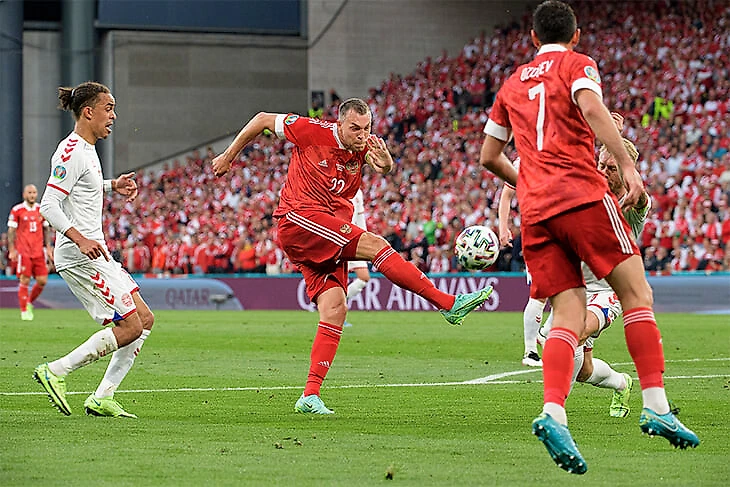 • Игра с Данией: как тренер Карпин согласен с Черчесовым, что это была лучшая игра на турнире «с точки зрения выполнения дисциплины и организованности». По крайней мере, в первом тайме, когда датчане нанесли лишь один удар в створ ворот: «не дали им разбежаться и могли создать больше быстрых атак».