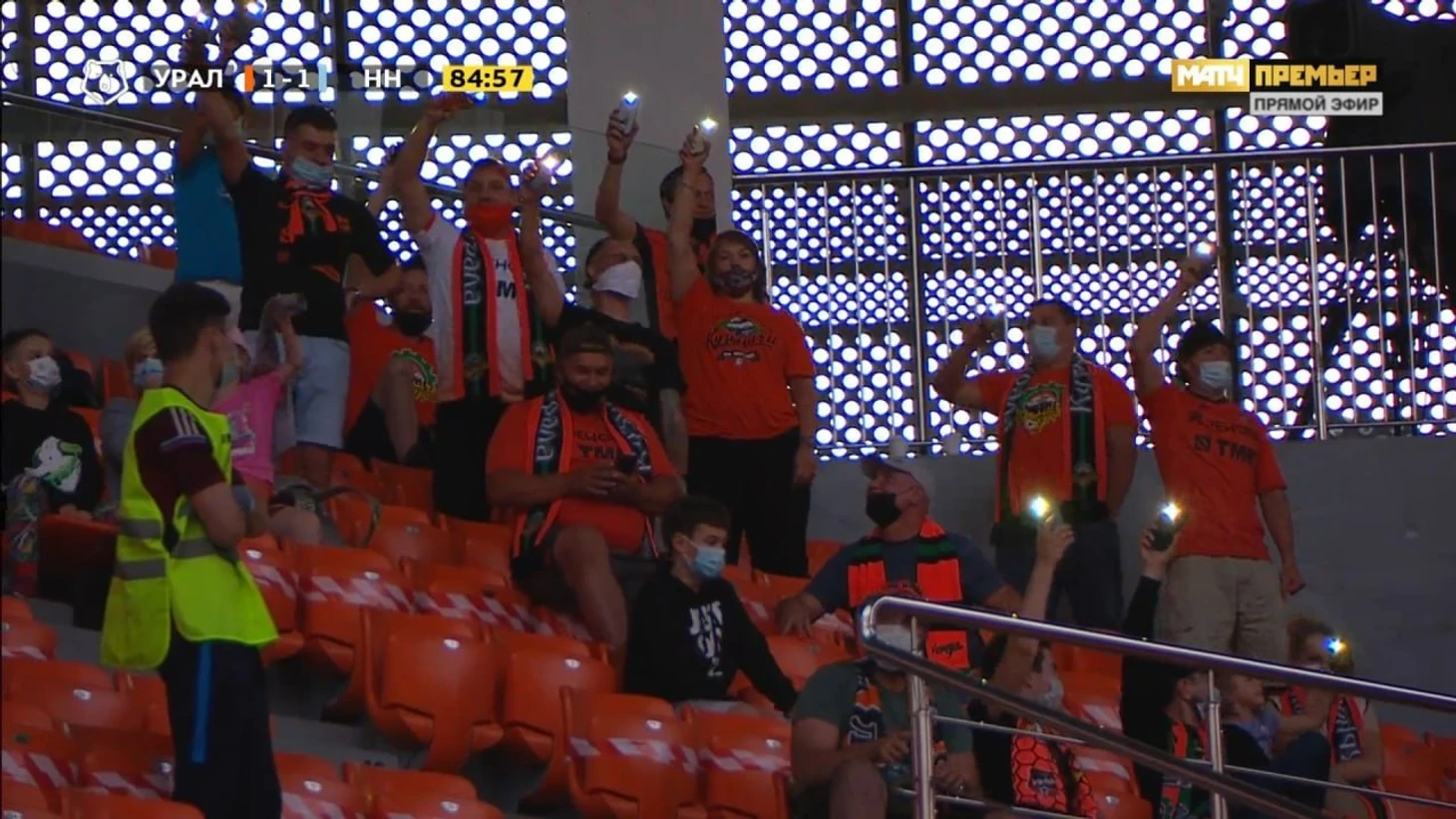 Редкие болельщики на трибунах зажгли фонарики, чтобы хоть немного добавить освещения на арене. Комментатор «Матч ТВ» Артем Держун поделился инсайдом: «Человек, который отвечает за свет, в отпуске. Но я не знаю, не шутка ли это».