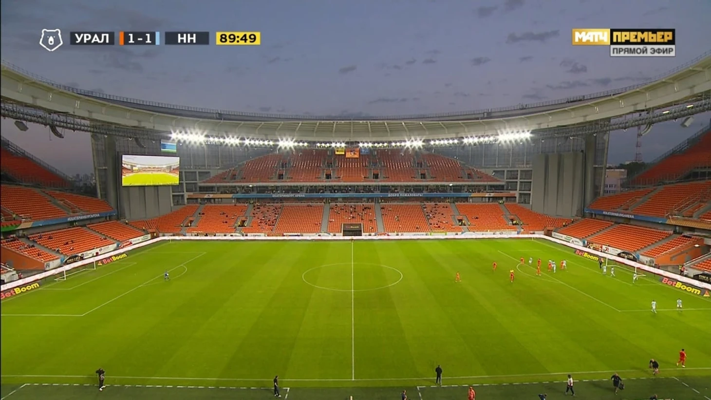«Урал» и «Нижний Новгород» катали заурядный матч второго тура РПЛ – 1:1, оба гола забиты после ошибок обороны – до 84-й минуты. Тогда на стадионе внезапно выключилось основное освещение. В Екатеринбурге почти зашло солнце, поэтому матч остановился.