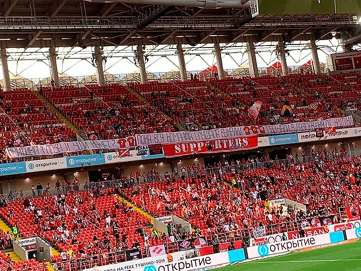 Здесь болельщики припоминают проигранный матч с «Нижним Новгородом» (1:2) – тогда футболисты и тренерский штаб москвичей подошли к трибуне, которая в это время скандировала: «Не позорьте «Спартак».