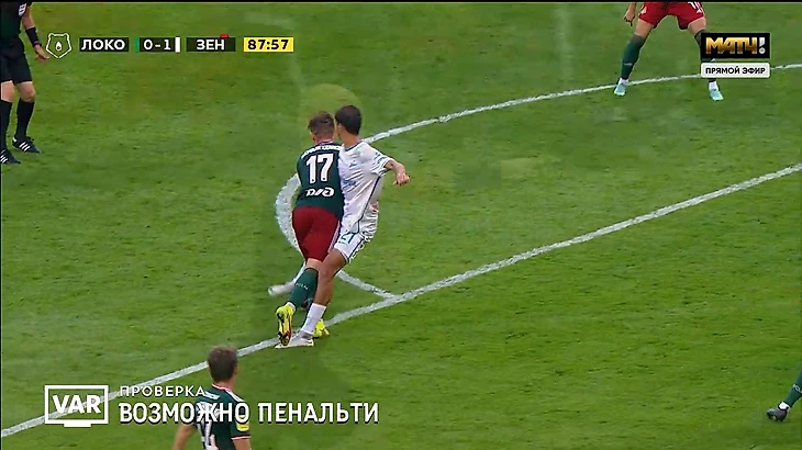 • 88-я минута: Жемалетдинов упал на линии штрафной после заметного контакта, Карасев находился в выгоднейшей позиции, но его свисток промолчал. Только после просмотра ВАР арбитр исправился и назначил ответный пенальти. Но и здесь есть нюанс – «Локо» забрал мяч после жесткого отбора Жемалетдинова у Вендела. Две секунды – и столкновение на линии с последующим 11-метровым.