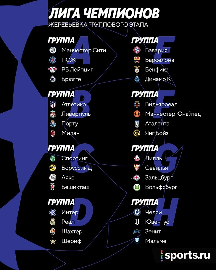 • Мегапара сложилась в группе А – там «Манчестер Сити» получил себе из второй корзины «ПСЖ». Потенциально Месси против Роналду? Для максимальной интриги рядом дерзкий «Лейпциг».