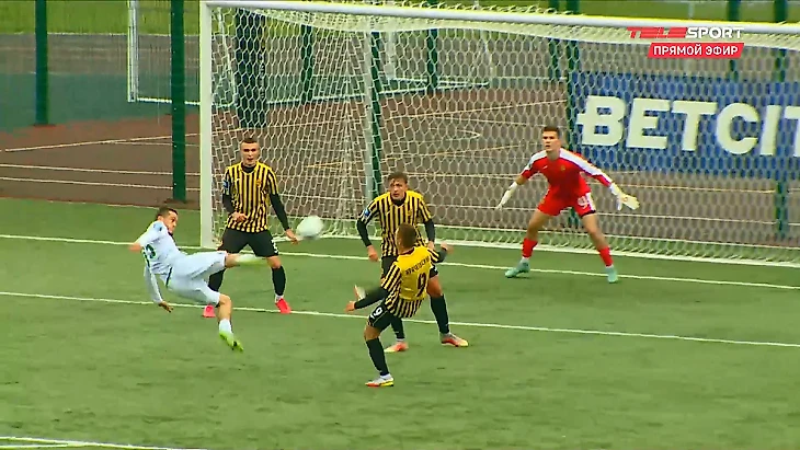 До конца тайма у Кадырова было еще пару моментов. Самый запоминающийся – вот такой удар в падении. На этот раз мяч пролетел мимо ворот.